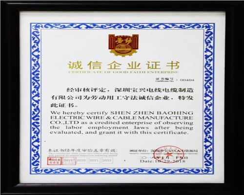 被海關授予“信得過企業”、被工商銀行分行授予“AAA”級信用企業、被中國企業登記年鑒委員會授予“明星企業”、被深圳市外商投資企業協會評為“全國外商投資雙優企業”、被深圳市科技與信息局授予“深圳市高新技術企業”、被寶安區評為“文明企業”、“國家高新技術企業”、“深圳市質量強市骨干企業”、“廣東省著名商標”、廣東省電線電纜行業協會理事單位、太陽能、新能源和機器人協會會員、深圳市企業創新發展促進會副理事單位、深圳市航空航天產業協會、中國線纜百強企業、寶安區百強企業、寶安區誠信企業、廣東省智能傳導特種電線電纜工程技術研究中心、廣東線纜行業最具競爭力企業20強等